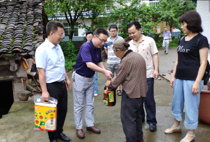 上午10时,刘春辉书记、刘长江经理一行对老洼坪村3户贫困户家庭进行走访,并送去米油等慰问品。