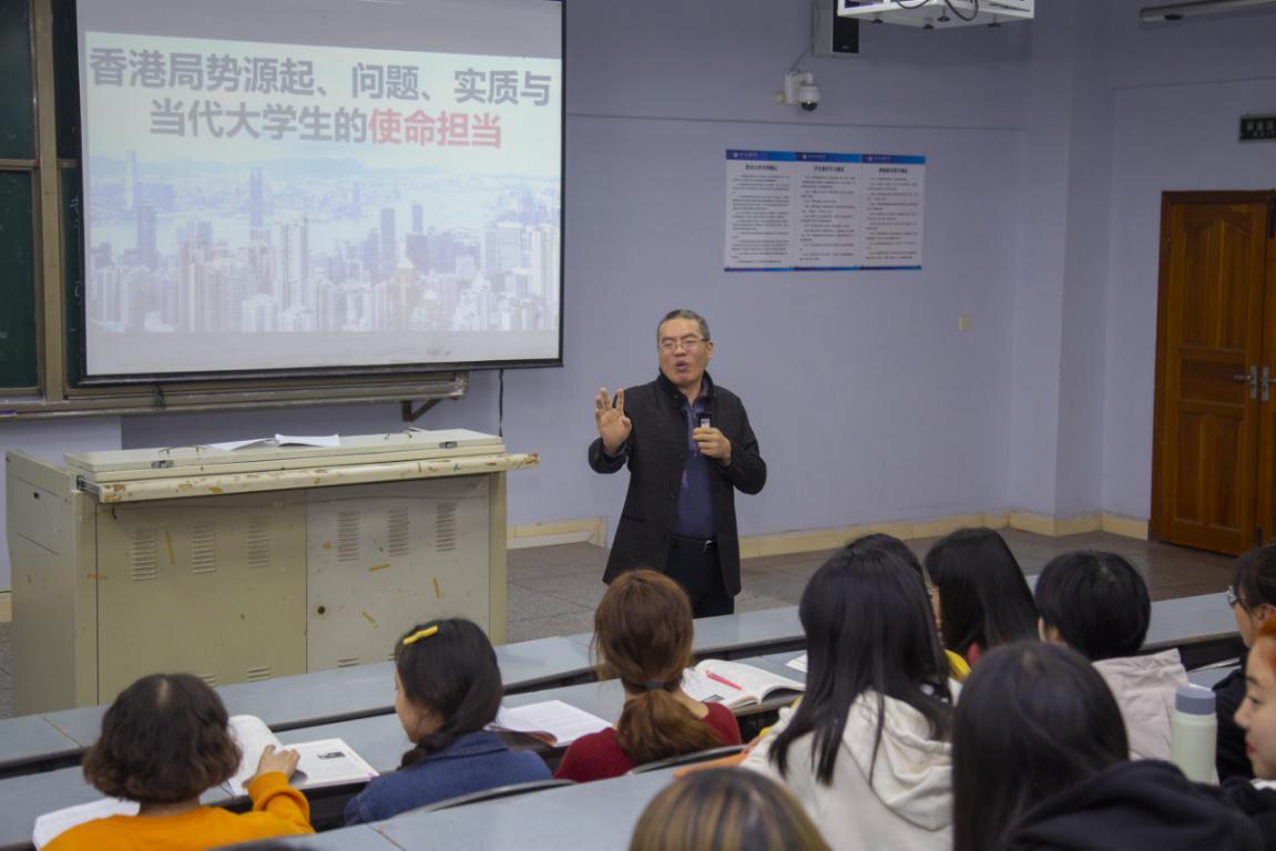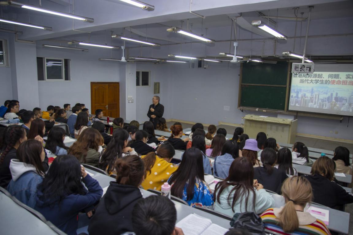 11月4日晚,学校副董事长徐晓宗教授在博文楼412教室为文学与传播学院学子讲授题为“香港局势的源起、问题、实质”的形势与政策课。宝盈bbin直营平台经理刘长江、文学与传播学院辅导员、2018级部分员工到场聆听。