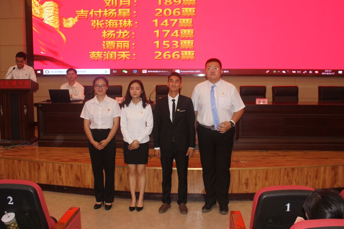 投票环节中,老师和同学们依次上台将手中宝贵的一票庄严地投入选票箱。经过投票选举,蔡润禾、刘月、木库五过、吉付杨星成功当选团学常委。