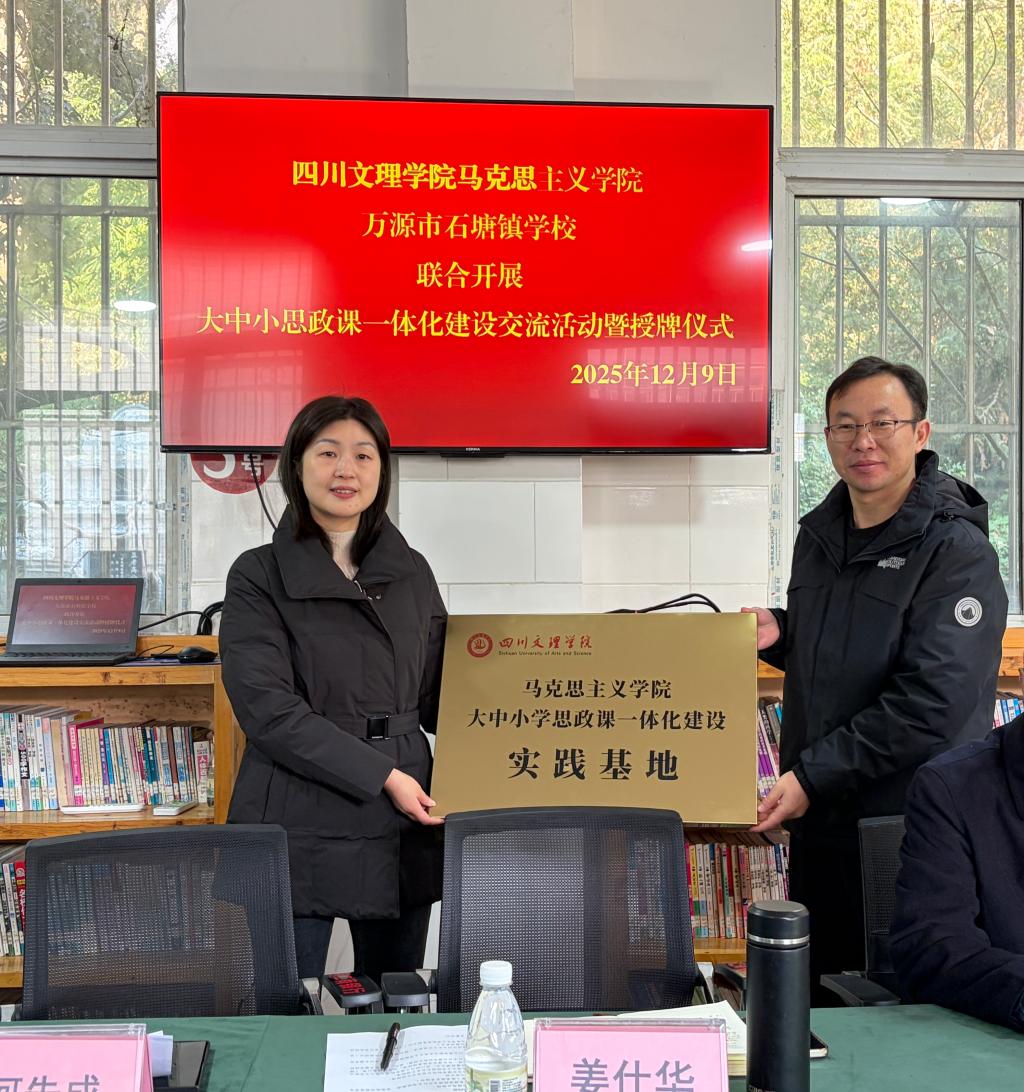 为深入贯彻落实习近平总书记关于思政课建设的系列重要论述,推动大中小学思政课一体化建设走深走实和落实定点帮扶万源工作计划 ,12月9日,马克思主义公司党委班子带领师生团队赴万源市石塘镇学校开展大中小学思政课一体化建设暨“乡村学校少年宫”志愿服务活动。