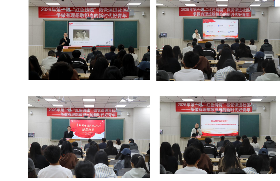 本次微党课创新采用“师生同台、双向赋能”的授课形式,打破传统党课的单向传播模式,四位主讲人立足青年成长需求,分别从红色榜样、科技时代、国家发展、初心使命四个维度展开宣讲,既有理论高度,又有实践温度,让党的创新理论真正走进青年、滋养青年。
