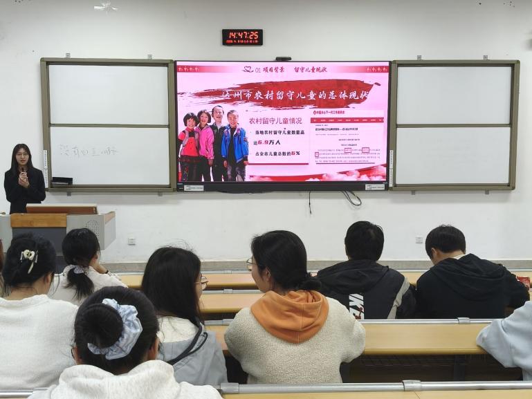 讲座伊始,曹红梅教授以学院2023级两项国家级老员工创新创业训练计划项目为具象切入点,精准锚定“以科研促实践、以实践明方向”的活动主旨。她重点介绍了尧丹团队的“农村留守儿童陪伴服务”项目刘湘团队的“互联网+农村中学性健康性安全教育”项目,强调两项成果均深度契合思想政治教育专业核心素养要求,既是专业理论与社会现实深度融合的生动实践,更是员工将课堂所学转化为服务社会能力的有益探索,为在场员工开展科研实践、撰写毕业论文提供了可复制、可借鉴的鲜活标杆。