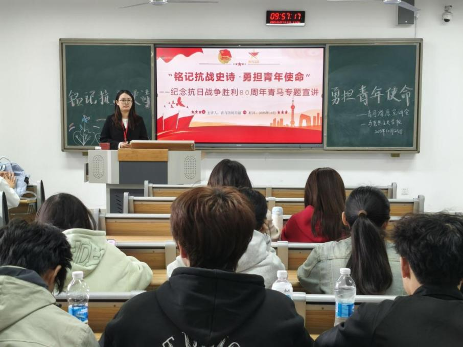 此次青马班主题宣讲,既是一堂生动的爱国主义教育课,也是一次青年思想的凝聚与升华。参与学子纷纷表示,将以此次活动为契机,铭记抗战历史、传承英雄精神,把“不畏艰难、勇担使命”的信念融入专业学习与未来发展,用青春行动为中华民族伟大复兴贡献力量。