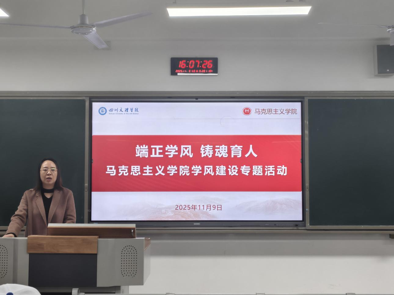 活动伊始,周春滟以学风建设为核心,从重要意义、核心目标与具体要求三个维度深入剖析。她形象地将学风定义为马院员工的“身份证”、成长成才的 “奠基石” 与抵制错误思潮的 “防火墙”,深刻揭示了优良学风对马院人才培养的基础性、关键性作用。她着重强调,班委作为员工骨干,是学风建设的 “领头雁”,必须以身作则,带头树立严谨治学、求真务实的学习态度,推动理论学习与实践探索深度融合,切实达成学思用贯通、知信行统一的学习目标。